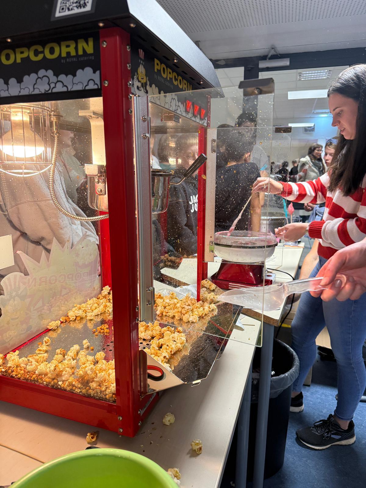 Zwischen 13:30 Uhr und 15:45 Uhr konnten Besucherinnen und Besucher ein vielseitiges Programm erleben: Zahlreiche Stände, liebevoll vorbereitet von Schülerinnen, Schülern und Lehrkräften, boten Mitmach-Aktionen, Spiele, Kinderschminken, ein riesiges Vier-Gewinnt, Dosenwerfen und vieles mehr. Eine Hüpfburg sorgte für strahlende Gesichter bei den jüngeren und älteren Teilnehmenden. Für das leibliche Wohl war mit Hot Dogs, Würstchen, Popcorn und Zuckerwatte bestens gesorgt; „Alles was das Herz begehrt“, wie eine Schülerin begeistert zusammenfasste.