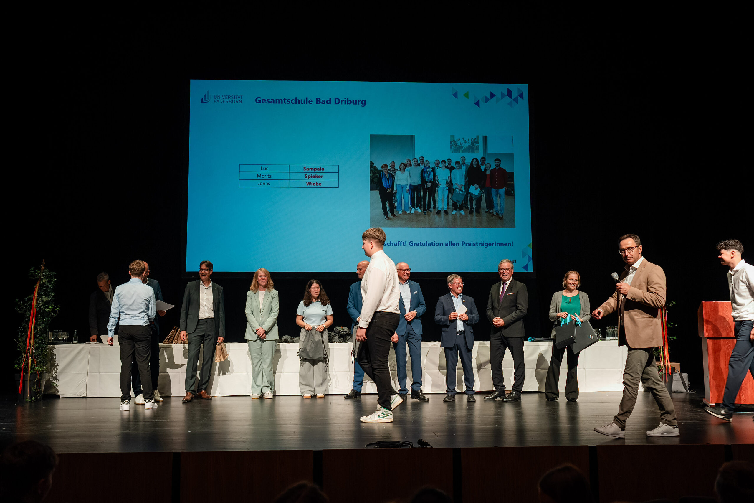 Die feierliche Verleihung fand in der Paderhalle statt – ein besonderer Moment für die Schüler*innen, ihre Eltern und die begleitende Klassenlehrerin Frau Riebler sowie den Abteilungsleiter II Sven Reinhards. Neben Urkunden und kleinen Preisen gab es vor allem Anerkennung für engagiertes Lernen und naturwissenschaftliches Interesse.